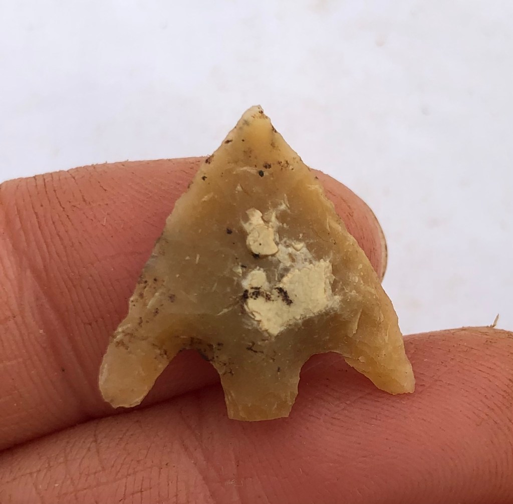 Tang and barbed arrowhead recovered from excavations at Berk Farm, Isle of Man in summer 2022